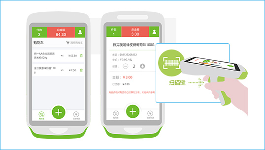 顾客用终端,在卖场内扫描物品加入购物车。期间可以随时查阅购物详情